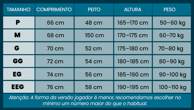Medidas de Camisa Jogador ×